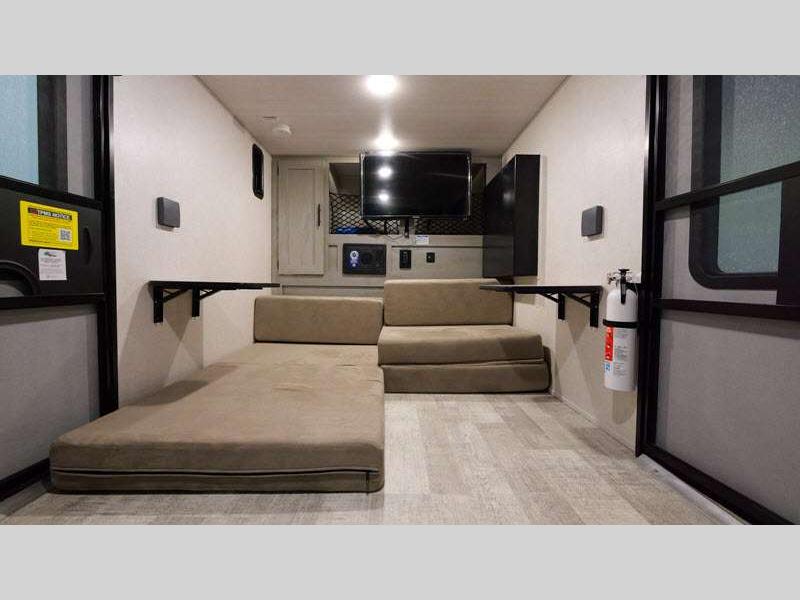 Each is built with a fully walkable PVC roof, a welded aluminum structure, and an enclosed underbelly with forced heat and radiant foil insulation for added protection against the elements. There are premium window treatments inside, along with convenient motion lighting, a 4-speed high powered bath fan, and more comforts. The optional Black Canyon Beast Mode Package can be added if you want an independent suspension, 400-watt solar panel, fresh water filter, and Maxxair roof vent cover.